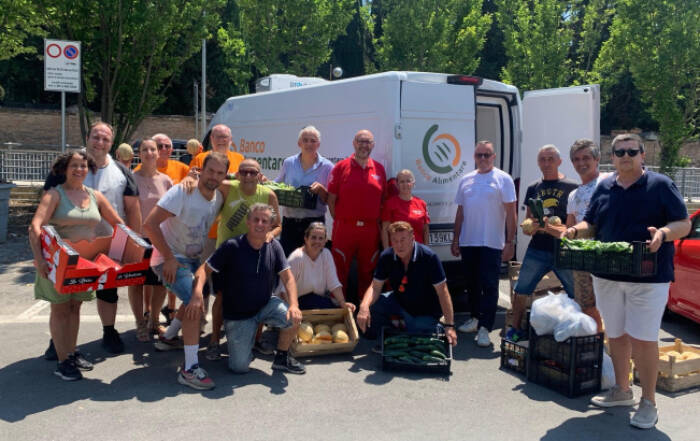 Donazione di beni alimentari dagli ambulanti del mercato di Pesaro.