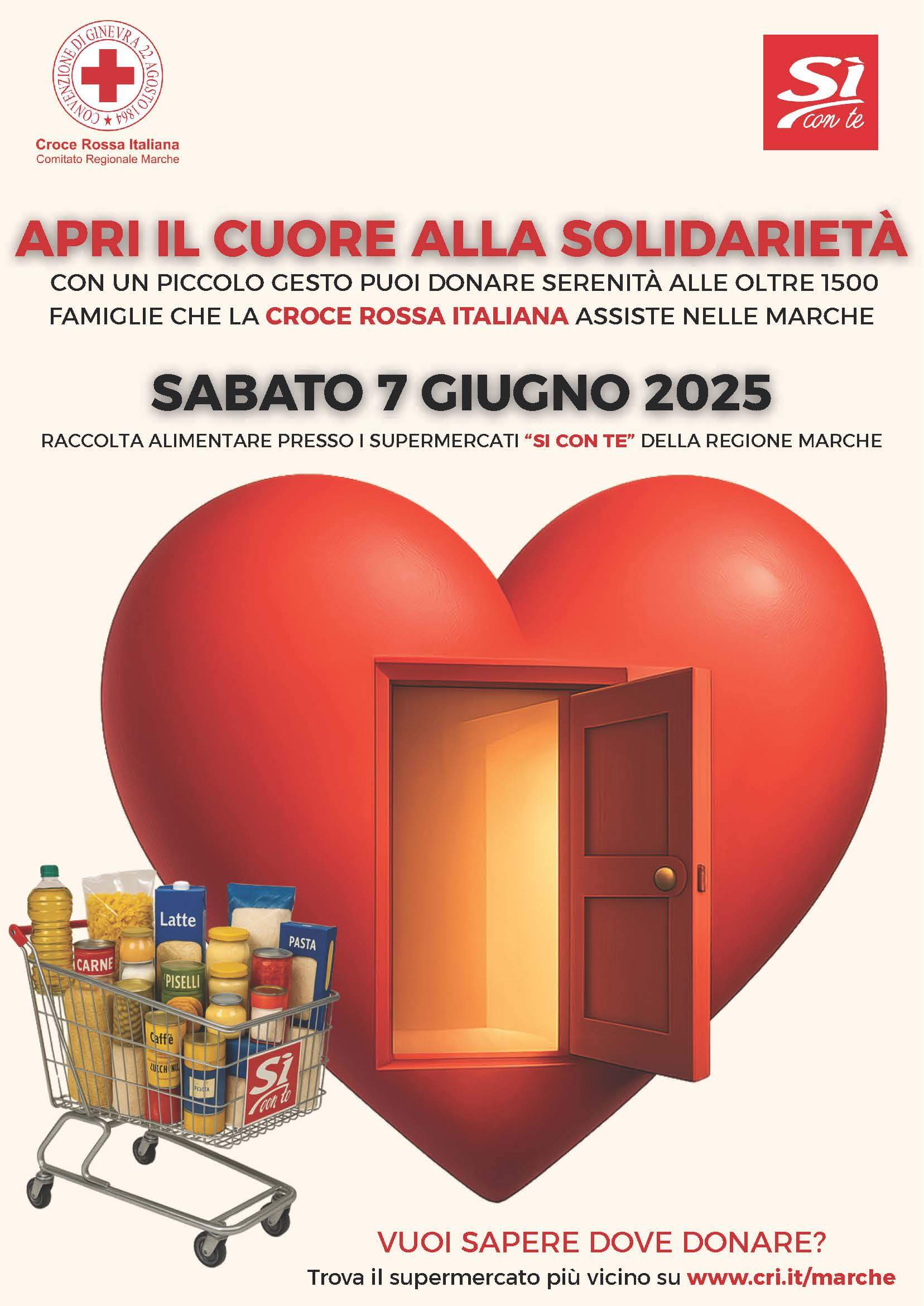 Siamo lieti di annunciare l’avvio di una raccolta alimentare straordinaria per sostenere i Comitati della Croce Rossa Italiana della regione Marche. Il nostro obiettivo è dare un aiuto concreto alle oltre 1500 famiglie in difficoltà economica, supportate quotidianamente dalla CRI.